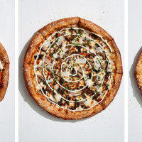 Olive oil and garlic base, shiitake, button and portobello mushrooms, caramelized onions, mozzarella and MontAmoré. Finished with a garlic aioli swirl and a spritz of black truffle oil. Garnished with fresh chives and shaved Parmesan. Size Choice: Large (490 cal), Medium (460 cal), Small (380 cal).